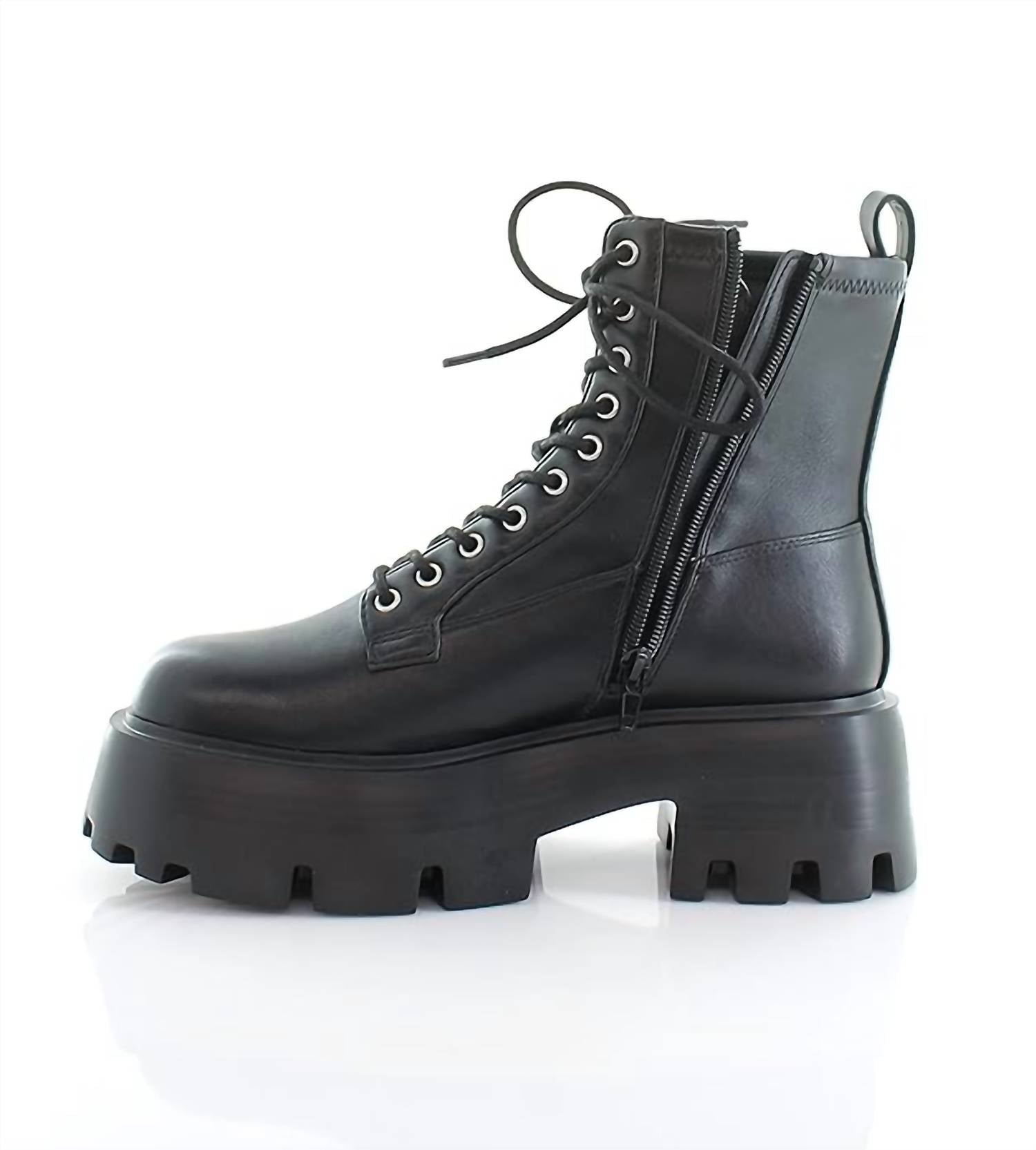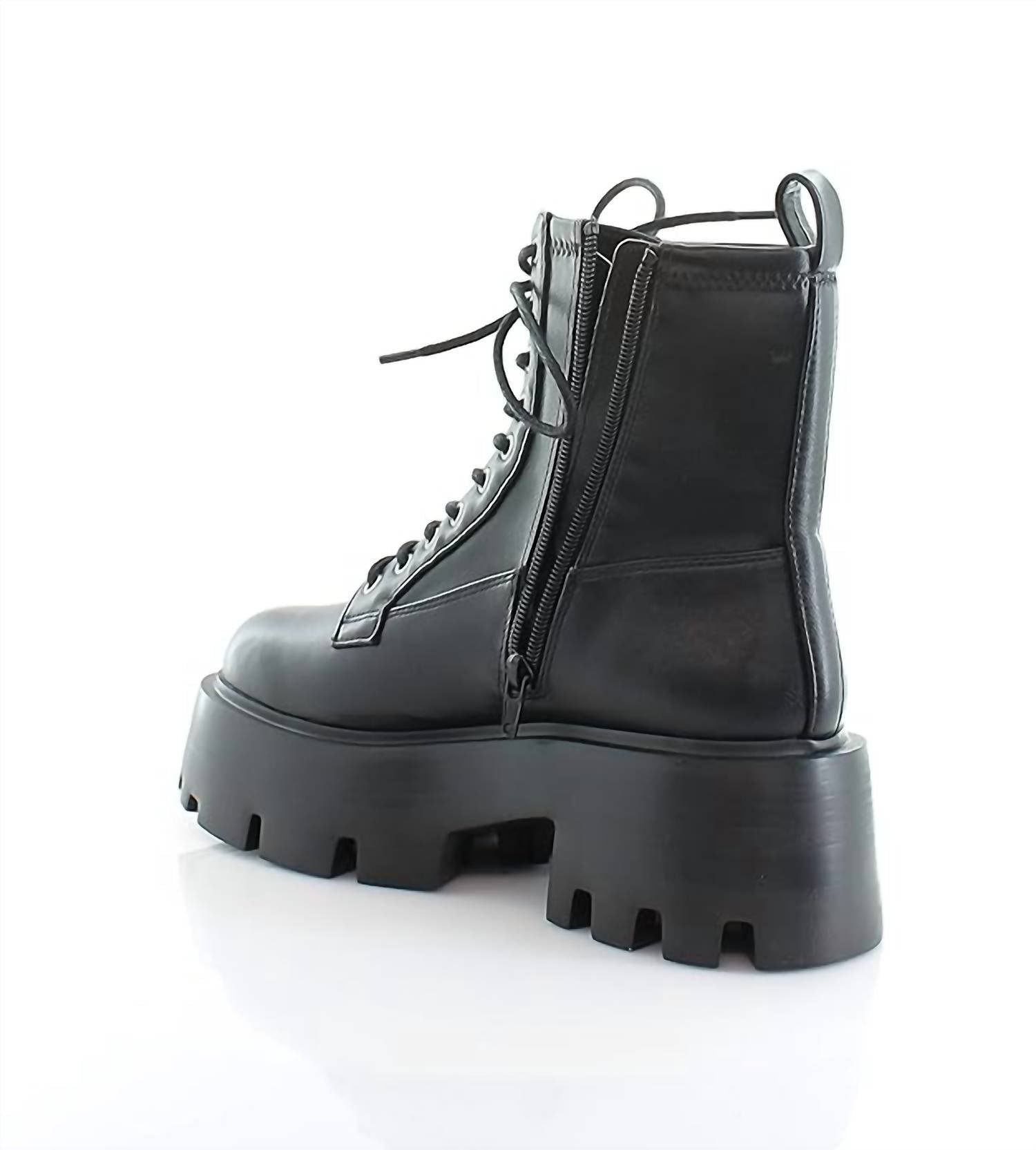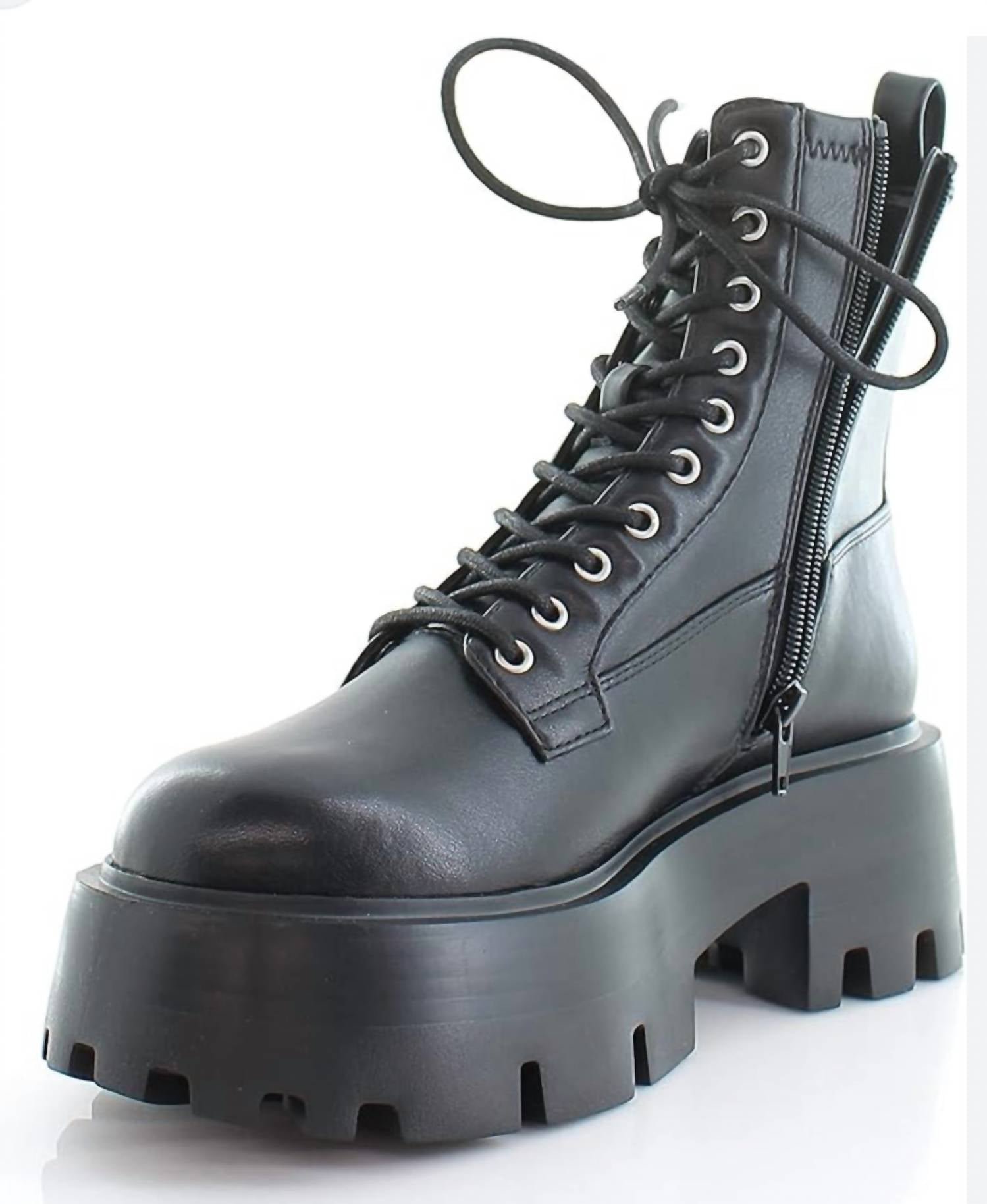 The moto boot trend is here to stay and we especially love this style.Meet the Maddox Platform Block Heel Combat Boot by Steve Madden, a must-have for any edgy wardrobe in classic black. With stretch faux-leather at the ankle, these boots offer both style and a flexible fit. They boast a chunky 2.25' block heel paired with a 1.75' platform, delivering the feel of a 0.5' heel. Featuring a round toe, lace-up front, and functional side zip, these boots are complete with a pull tab for easy wear. The synthetic upper and EVA sole make them perfect for any costume party or Halloween event. Imported with a hint of grunge for the summer season.