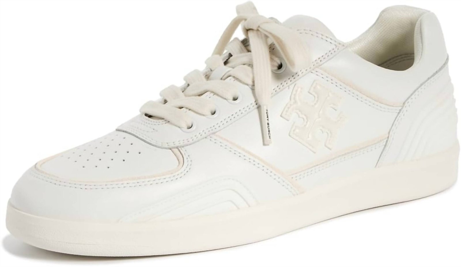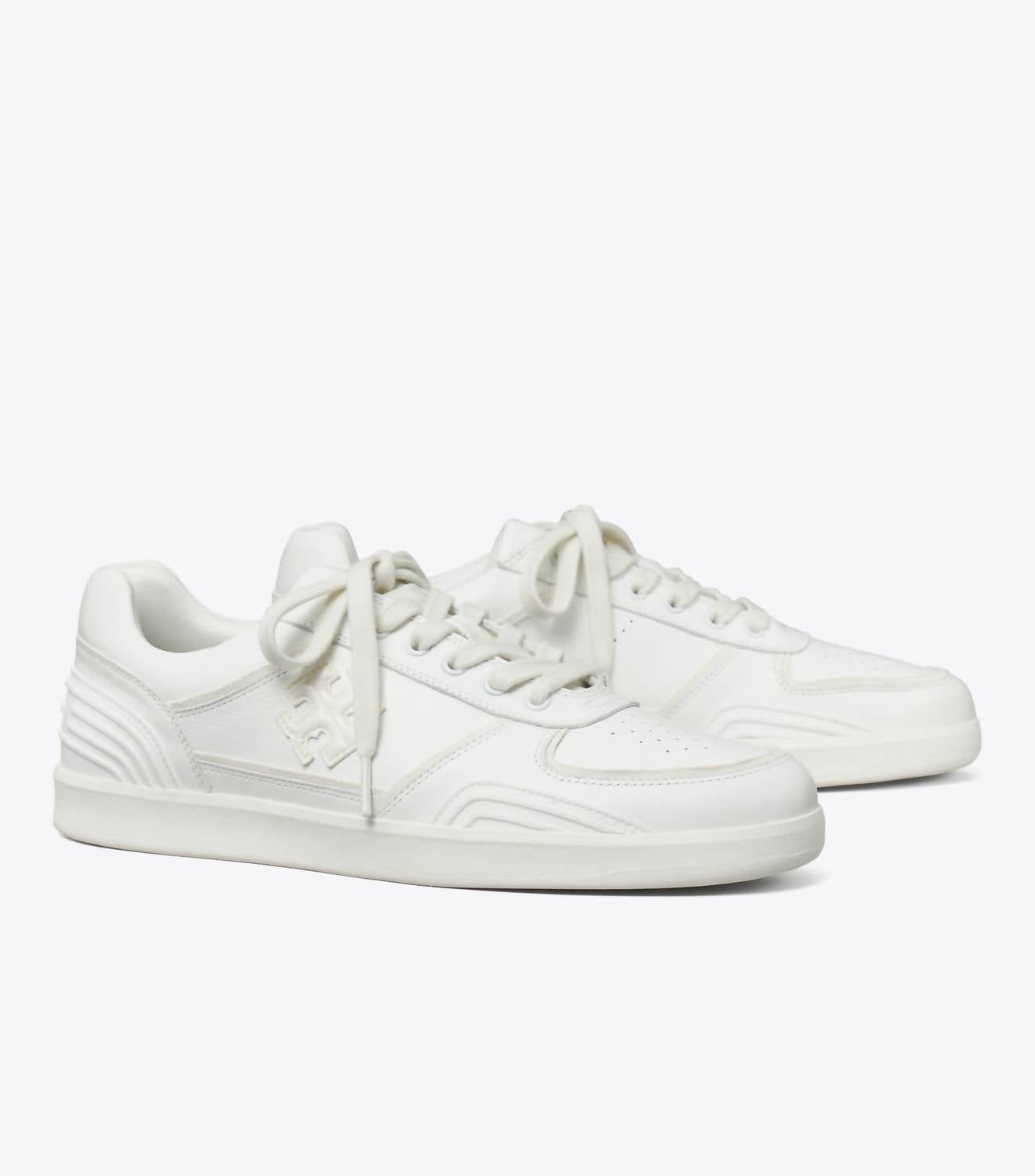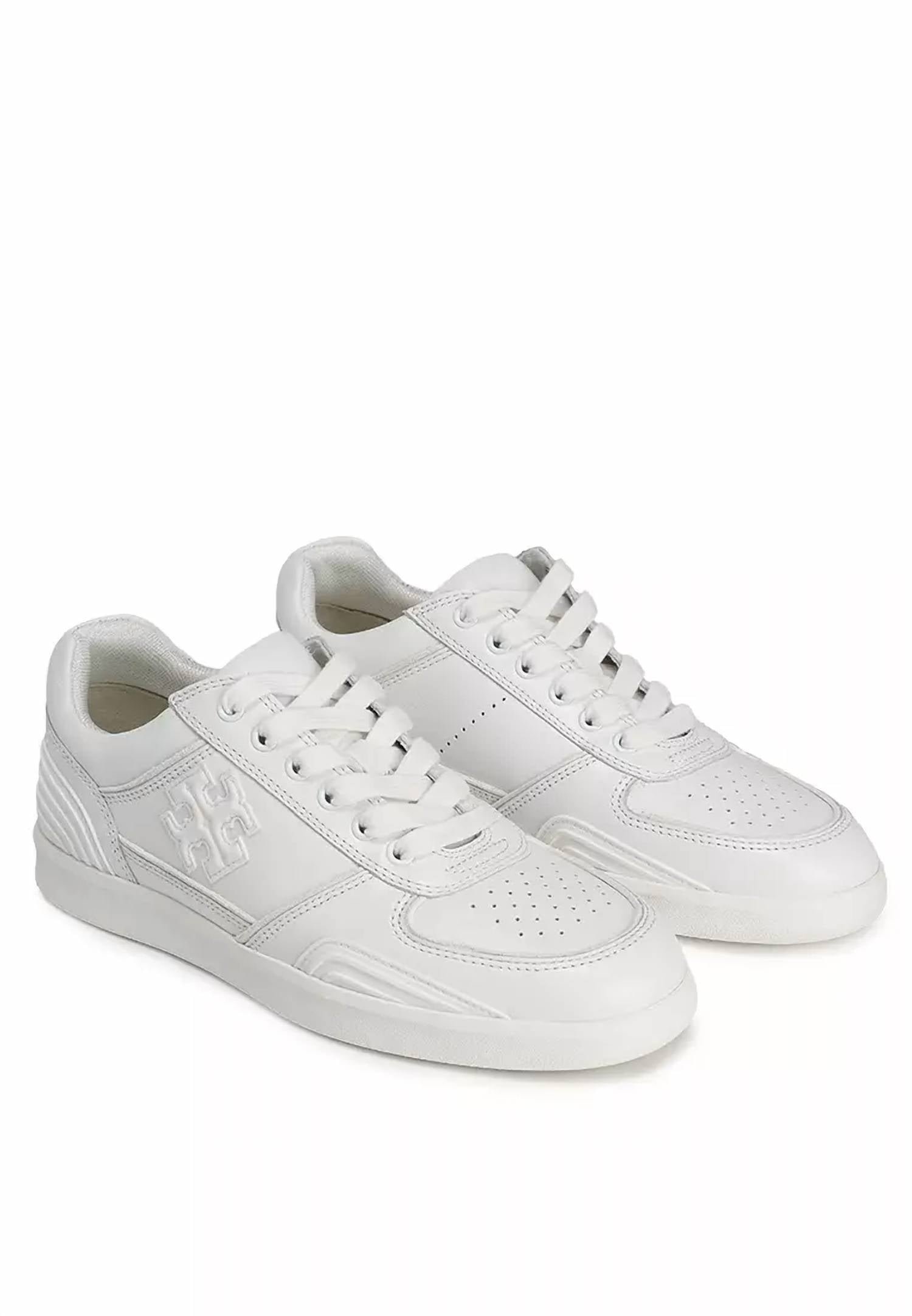 When fashion and function come together seamlessly.Discover the Women's Clover Court Sneaker by TORY BURCH, a stylish titanium white sneaker perfect for fall streetwear and vacation outings. Featuring a classic round toe and flat heel with a height of 1 inch or under, these sneakers offer comfort and ease for adult women. The trendy design and versatile style make them an ideal addition to any casual wardrobe. Perfectly suited for those who appreciate both fashion and function.