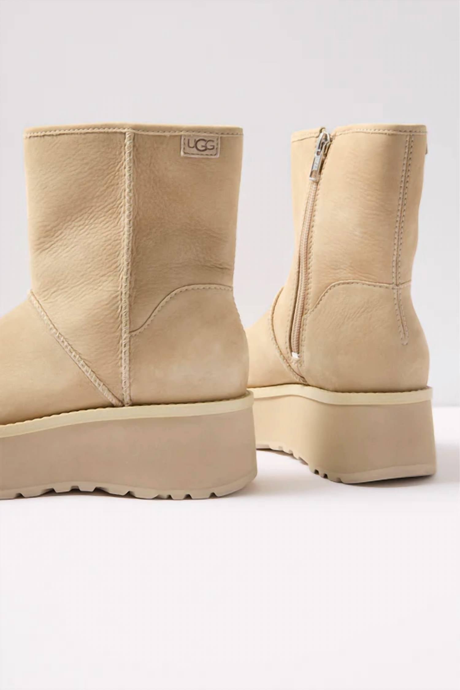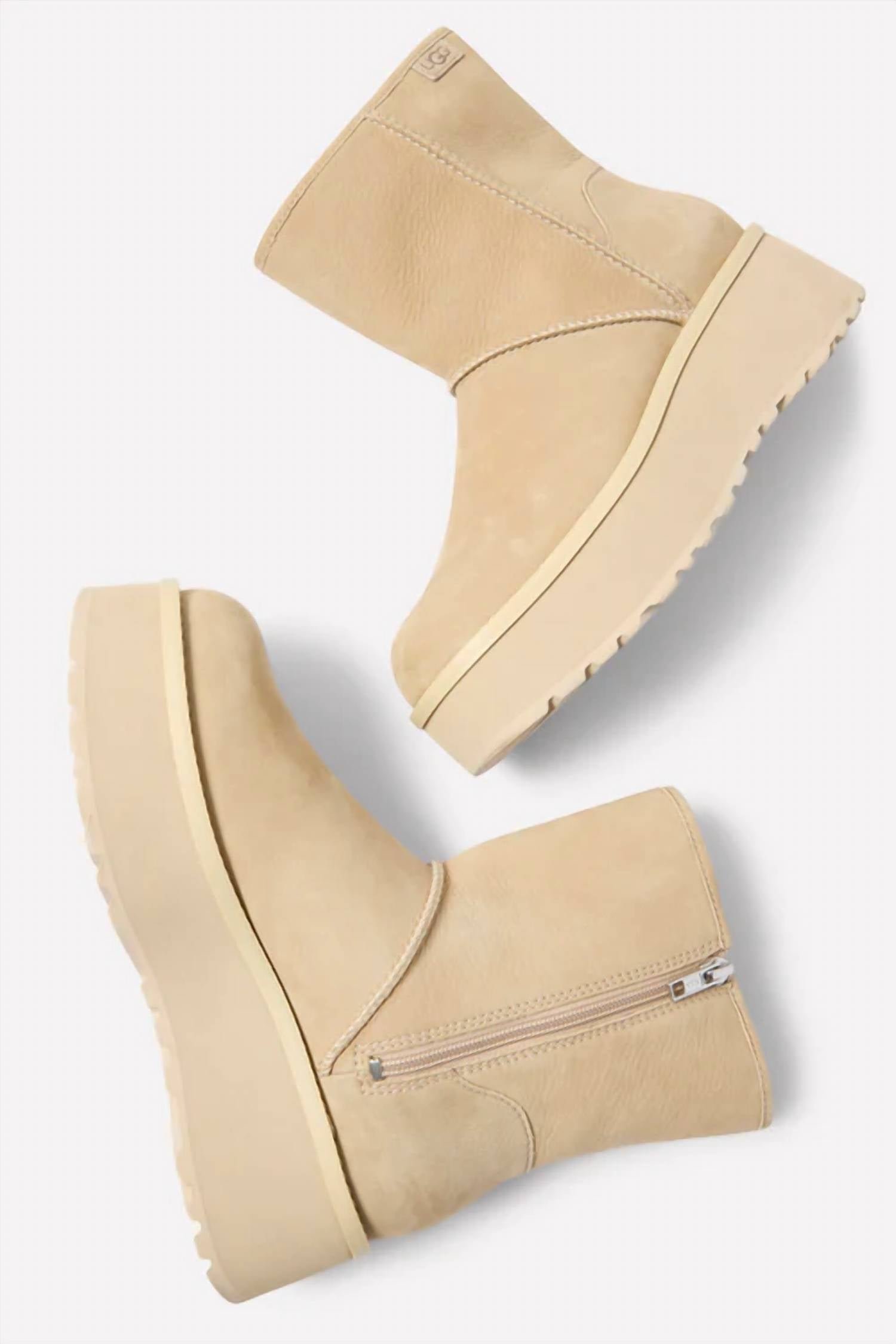 Rainy day No problem! The cutest and most comfortable rainboots of the season.Step up your seasonal shoe game in a chic Mustard Seed hue. Designed for winter, boast water-resistant leather uppers and a stylish platform heel with a height of 2 inches, complemented by a 1 1/2-inch platform. Convenient side zipper closure ensures easy wear, while the molded EVA footbed and sugarcane-based EVA midsole offer comfort and sustainability by reducing fossil fuel dependency. Rubber outsole completes the construction, making these boots perfect for travel and minimalistic winter style with their round toe design.