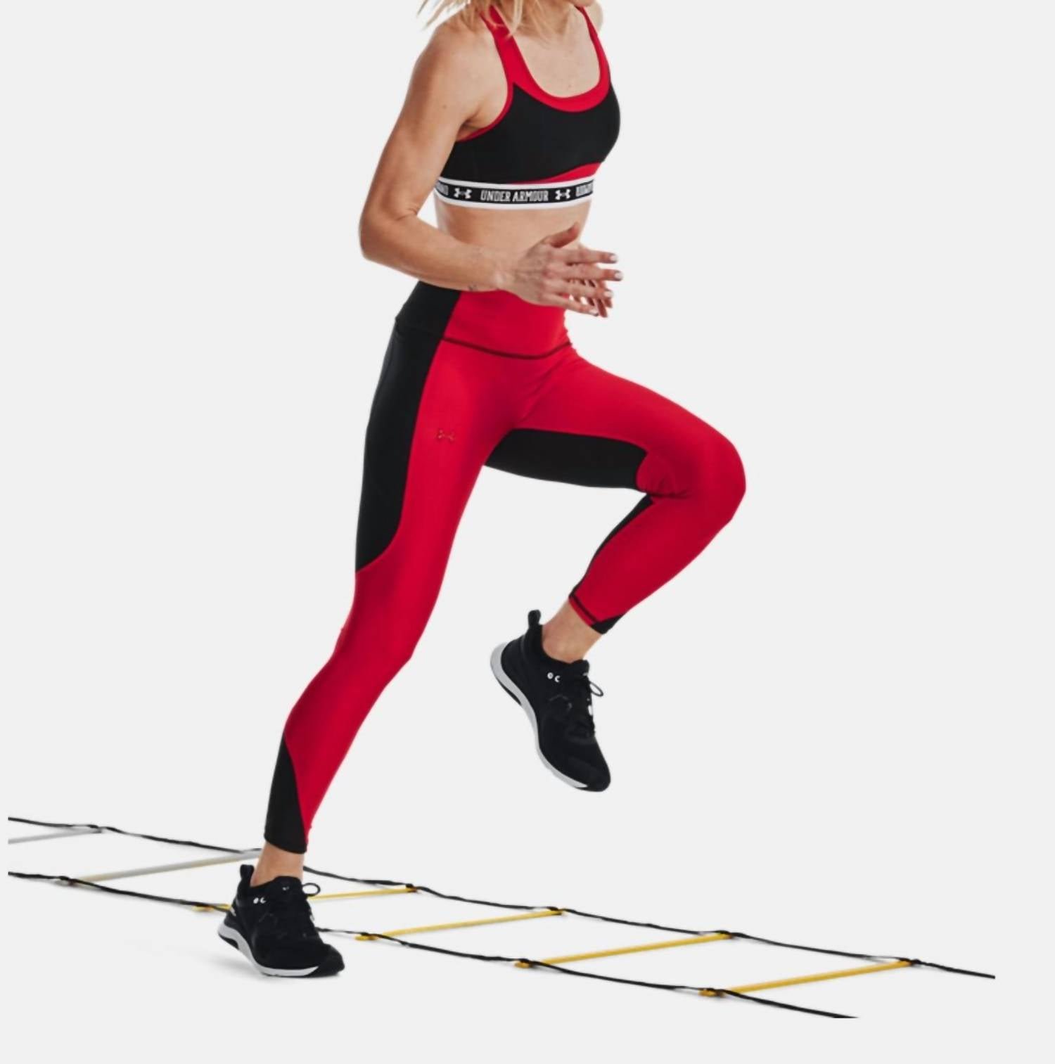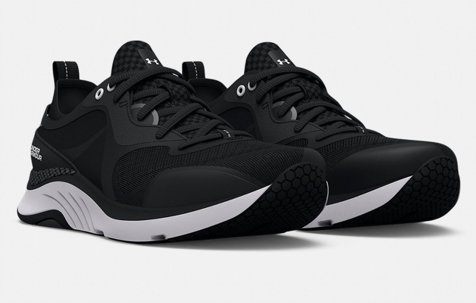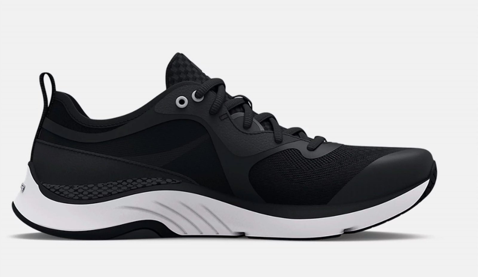 Cute, functional, and comfortable. These sneakers check all the boxes.Introducing the Women's Hovr Omnia Training Shoes by Under Armour, designed specifically for the female foot to elevate your workout experience. Crafted with a breathable engineered mesh upper, these sneakers ensure strategic support and enhanced stability with a molded quarter panel and internal strap. The responsive UA HOVR cushioning technology minimizes impact, returns energy, and propels you forward, while the durable rubber outsole provides flexible grip where you need it most. Ideal for fitness and workout sessions, these black sneakers feature a round toe shape adding both style and comfort.