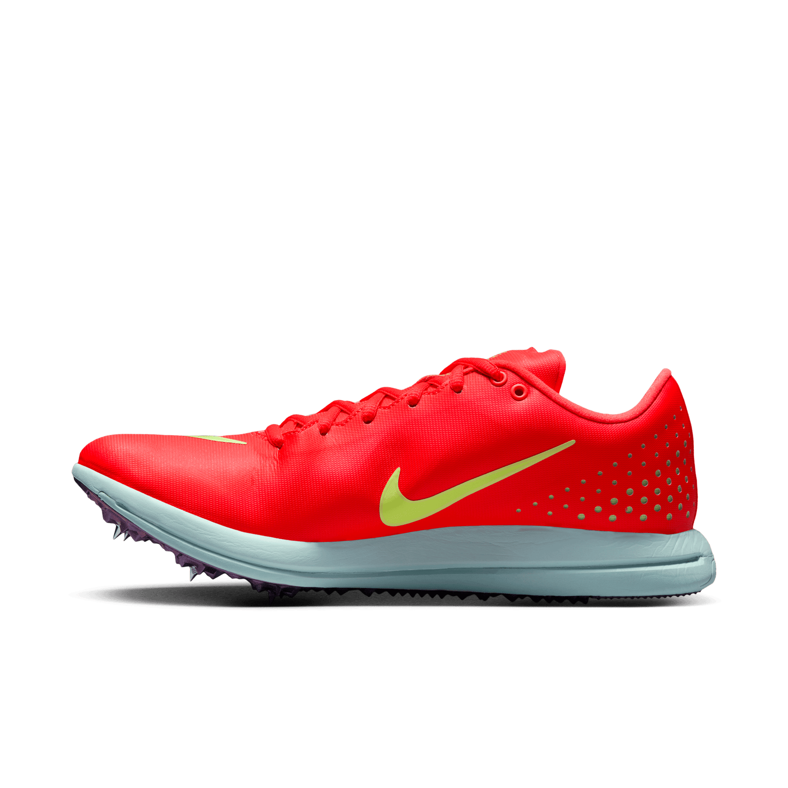 Generative outsole has six spikes for lightweight and durable traction.