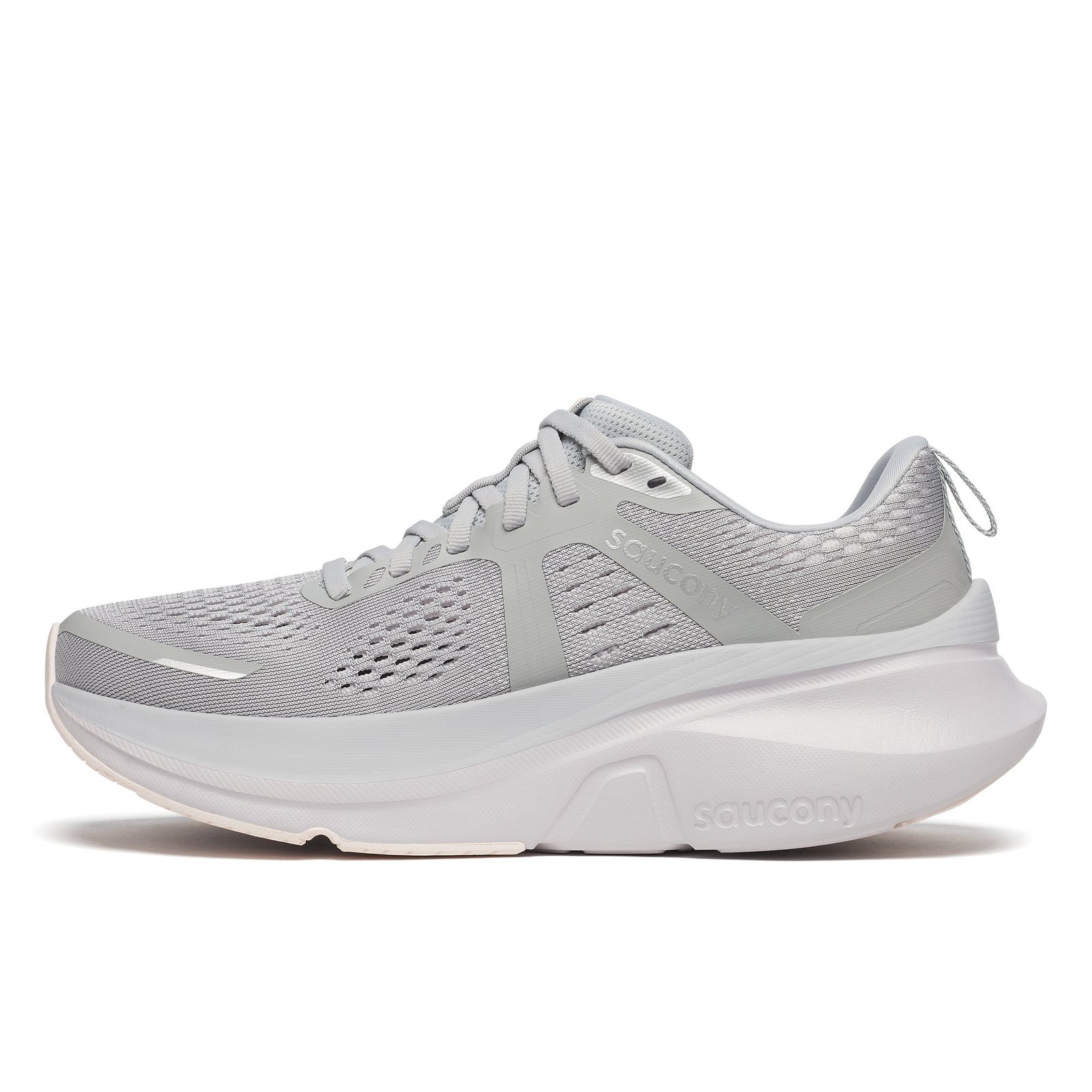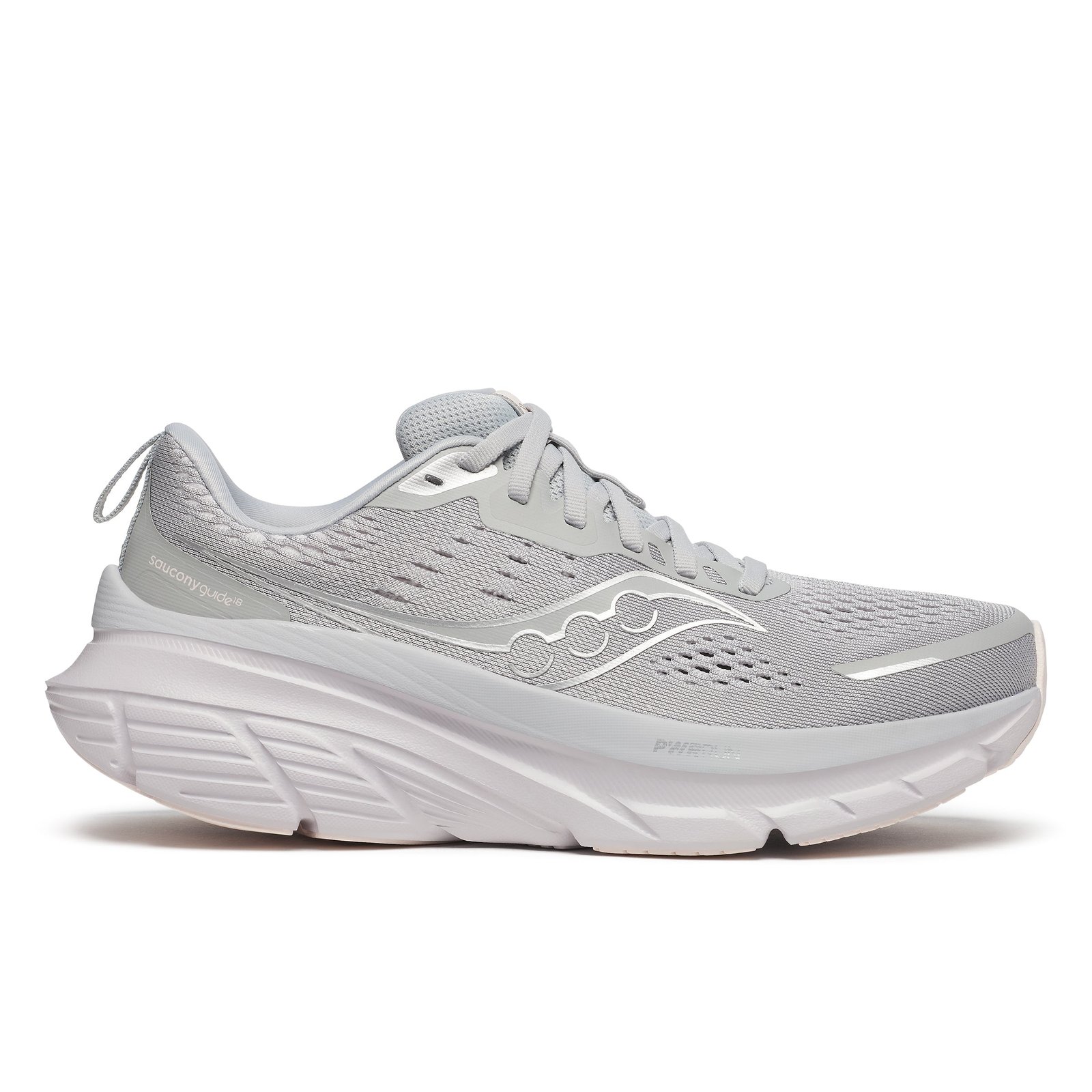 Your personal 'guide' to smoother strides! Your brilliantly refreshed Men's Saucony Guide 18 running shoes have been revamped with a deep-seated footbed that keeps you firmly grounded yet ready for flight. Thanks to Center Path Technology, each step flows seamlessly from heel to toe, giving you a balanced, steady rhythm. Sink into an abundance of soft PWRRUN foam this time around, for cloud-like landings, while the XT-900 carbon rubber outsole holds onto the earth beneath you. With a breathable mesh upper, the Guide 18 is built to keep pace with your journey, no detours, just pure forward motion!