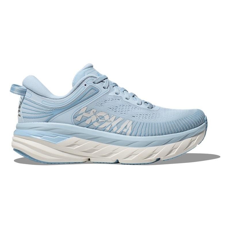 The most cushioned HOKA road shoe available, the Bondi 7 delivers a smooth and balanced ride. Engineered with the same full EVA midsole, breathable mesh upper and signature Meta-Rocker technology as its predecessor, the Bondi 7 is updated with a plush collar designed to accommodate a narrower heel - and conform to a wide variety of ankles.