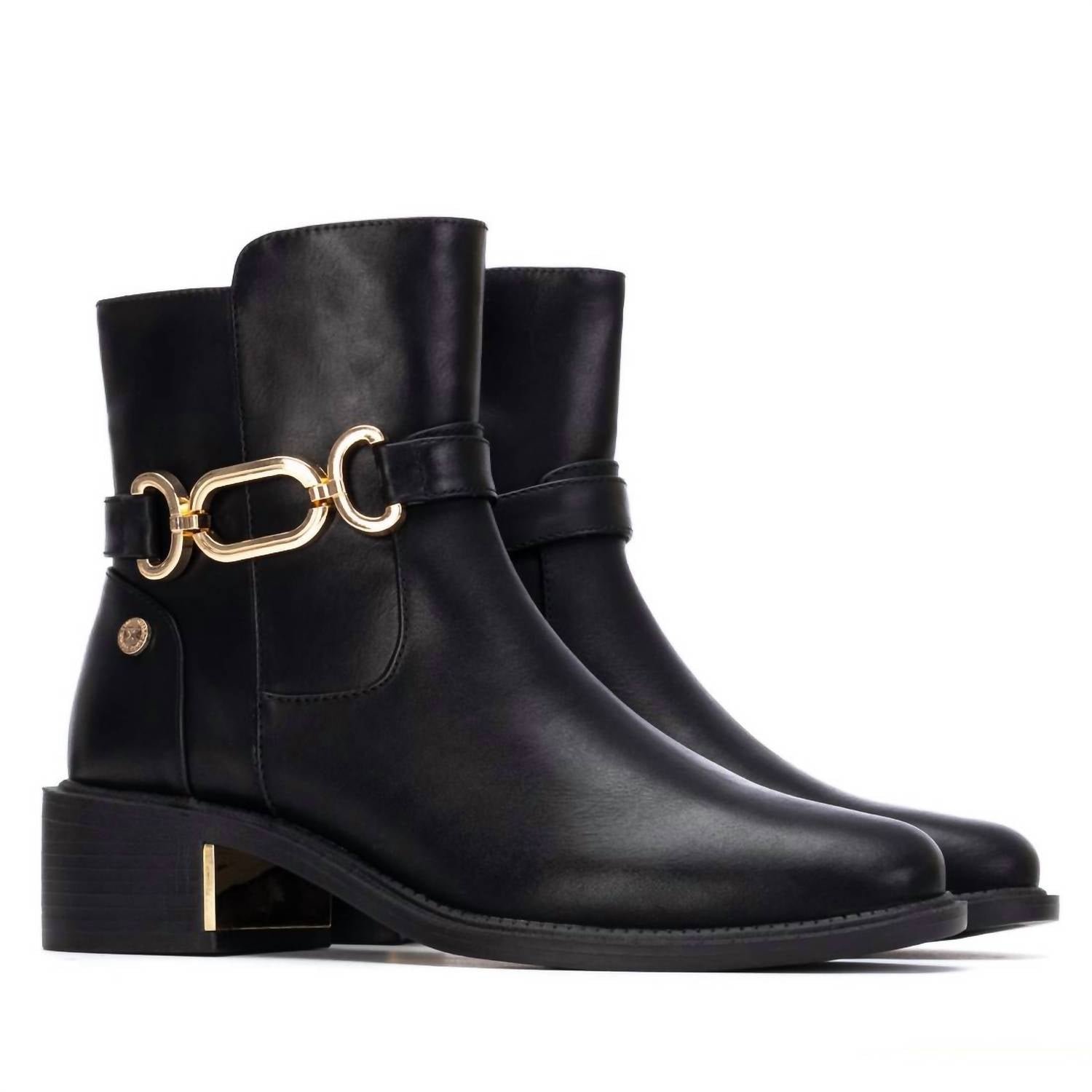 Say hello to the perfect, most versatile boot. The ankle height makes this style easily transition from day to night. Wear them with your favorite skinny jeans and tee for a more laid back look, or pair them with your favorite mini dress and jacket for a night out on the town.Enhance your shoe collection with the Xti Women's 144398 Ankle Booties, an epitome of style and comfort in sleek black leather. Perfect for dinner parties or your next Thanksgiving event, these booties feature a sophisticated block heel and a timeless round toe design, aligning with the trend of Quiet Luxury. Crafted without compromise, the fine materials offer quality and expert craftsmanship, making them an ideal choice for both casual outings and special occasions. Step out with confidence and let these booties be your go-to for any stylish summer event.