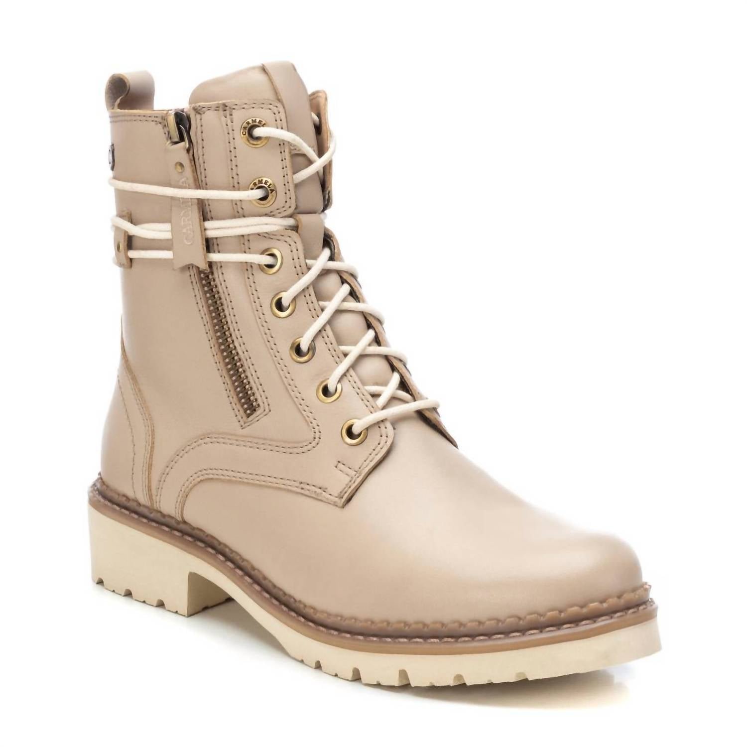 Say hello to the perfect, most versatile boot. The ankle height makes this style easily transition from day to night. Wear them with your favorite skinny jeans and tee for a more laid back look, or pair them with your favorite mini dress and jacket for a night out on the town.Introducing the Women's Carmela 161028 Booties by Xti, expertly crafted from premium leather for a chic minimalist look. These beige ankle boots feature a chunky heel and a round toe, perfect for summer outings and camping trips. Step out with style and comfort, as these booties effortlessly combine quality with fashion. Ideal for women who appreciate expert craftsmanship without compromising on elegance.