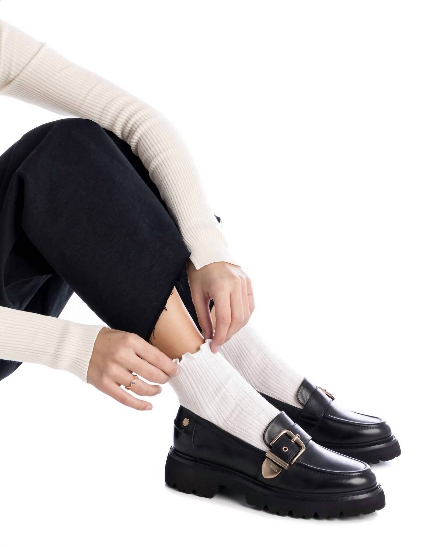 A preppy yet feminine take on the classic loafer.Discover the Women's Carmela Collection Leather Loafer by Xti, a standout piece in sophisticated hue. Crafted from high-quality leather, these loafers provide both style and comfort for any occasion. With a low chunky heel, they ensure an easy, fashion-forward wear. Ideal for adding a touch of elegance to your wardrobe.