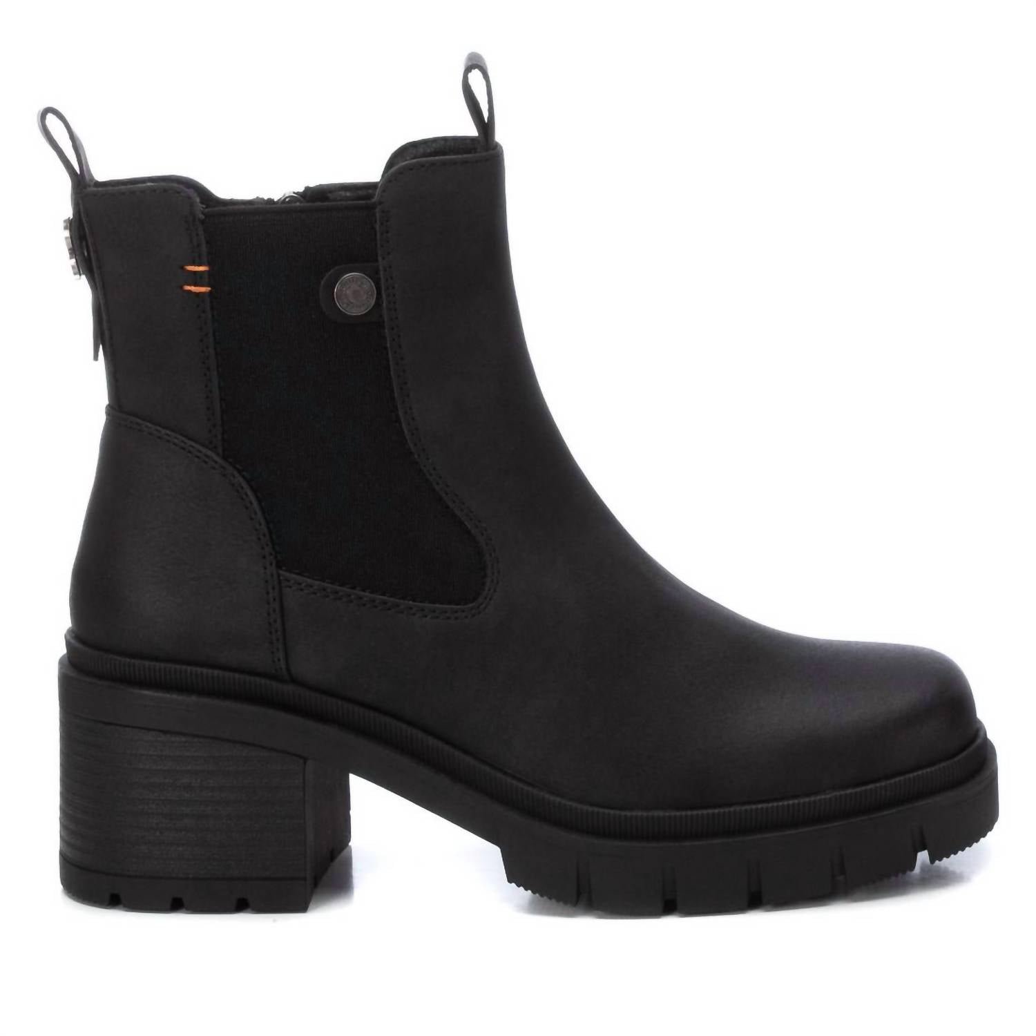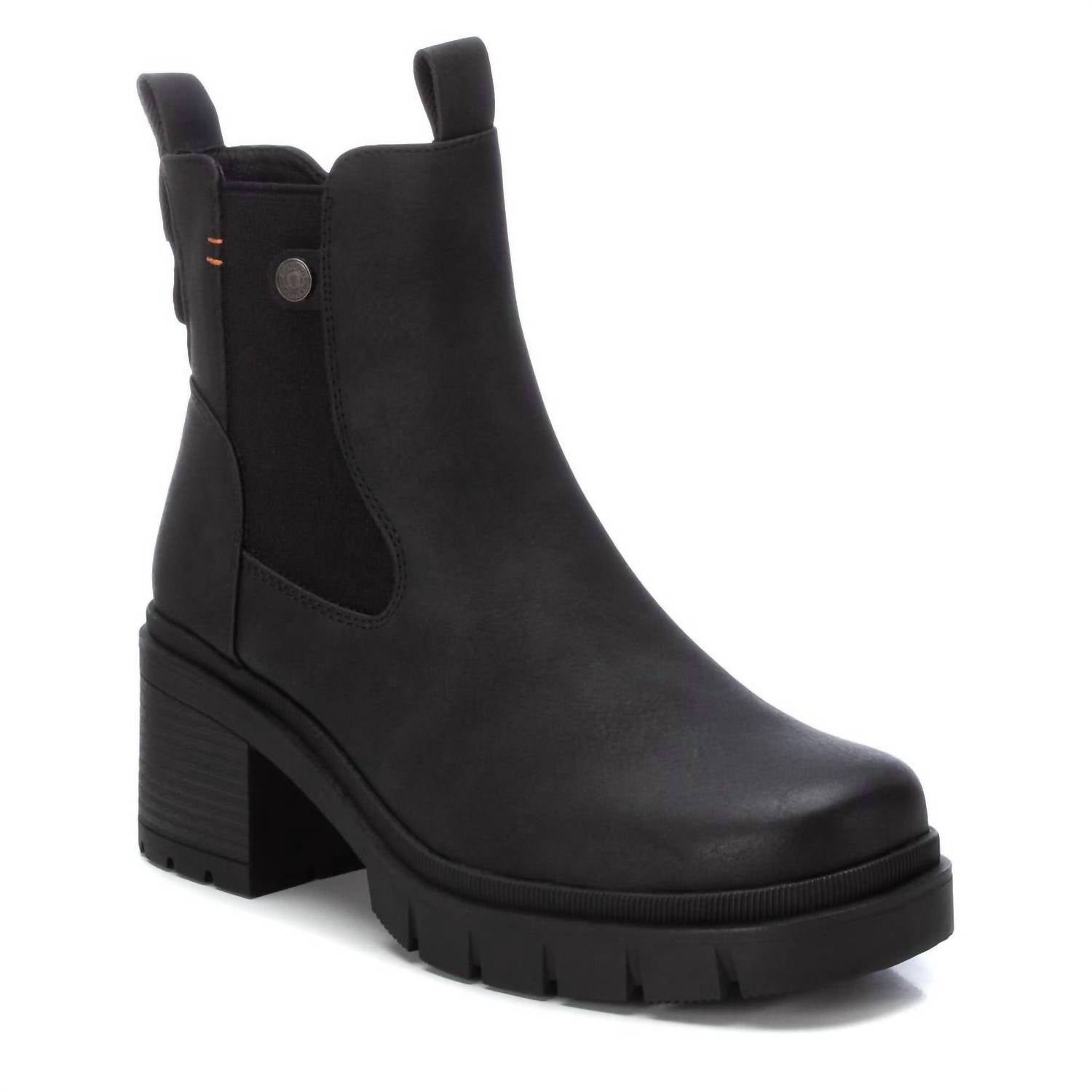 Say hello to the perfect, most versatile boot. The ankle height makes this style easily transition from day to night. Wear them with your favorite skinny jeans and tee for a more laid back look, or pair them with your favorite mini dress and jacket for a night out on the town.Elevate your summer style with the Women's Refresh Booties by Xti, crafted from premium black leather. These ankle booties feature a sleek round toe and a chunky heel, perfect for adding a touch of minimalist elegance to any dinner party ensemble. Designed for women with a medium shoe width, these booties seamlessly blend style and comfort. Ideal for adults seeking a fashionable choice for special occasions. Country of origin details are not provided.