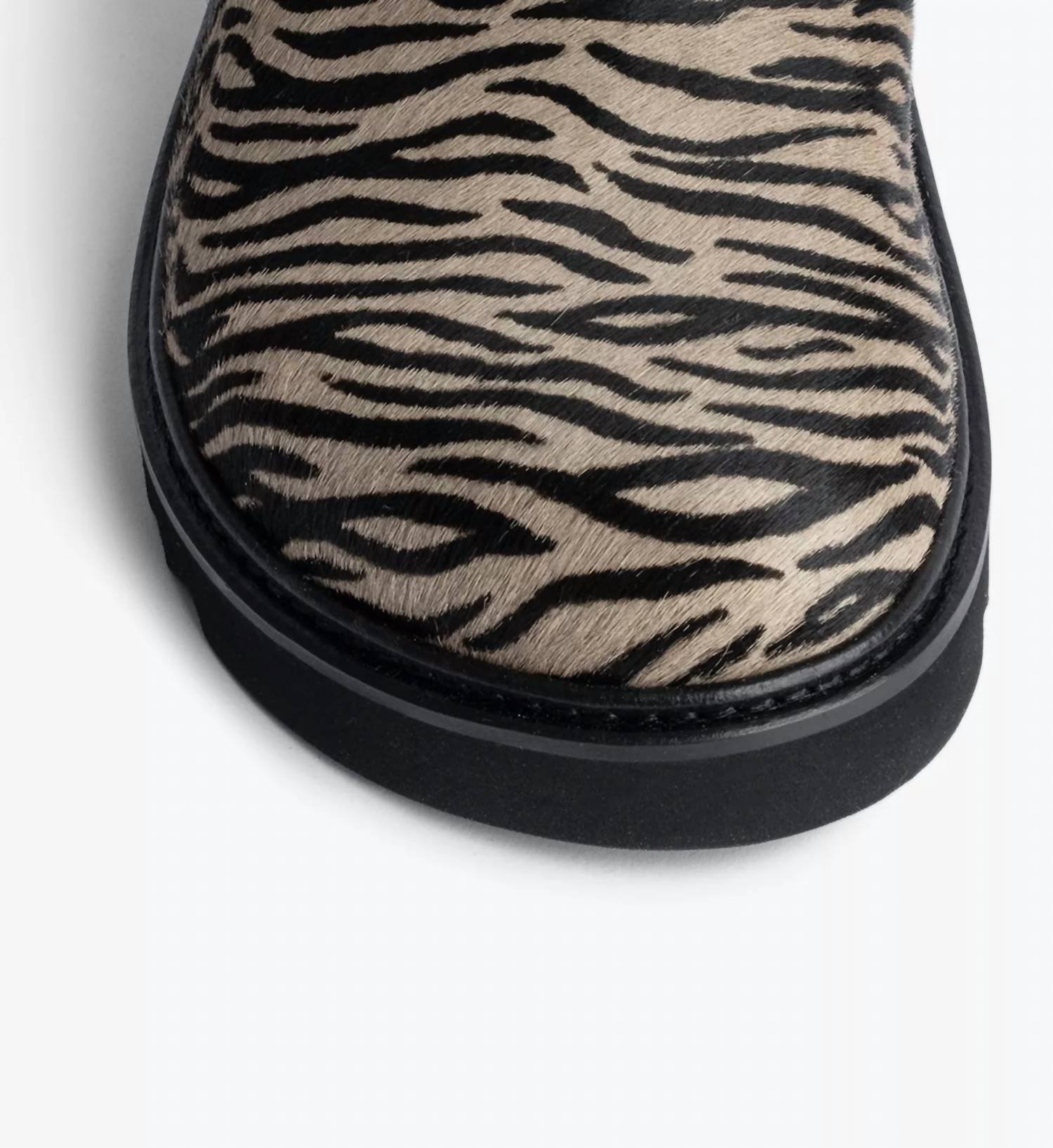 Stylish, comfy, and versatile. We can't find anything wrong with these.Slips on. Round toe. Flat sole. Zebra print throughout. Silver-tone logo detail at the side. Upper: 100% Leather. Lining: 100% Leather. Sole: 100% Rubber. Specialist leather clean. Heel height 3cm. Made in Portugal.
